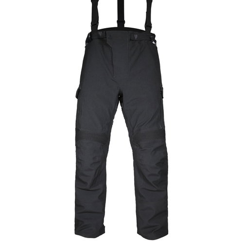 The Frank Thomas Quest Laminate pants offer superior versatility for all seasons. The laminated softshell outer is fully waterproof with a removable thermal lining and direct ventilation (complex mesh ventilated panels) for warmer temperatures and fairer weather. The magnetic fastening system provides versatility for air circulation, featuring welded zips to prevent water ingress. Adjustability throughout, with press studs and elastic straps on the calves, thighs, and cuffs, provides a customisable fit. The Quest also provides a connection zip to attach to the matching jacket. CE-certified model, class AA, compliant with the EN 17092-3:2020 standard, this features CE Level 2 armour at the knees and hips. Reflective detailing maximises night visibility. A taller rear prevents weather ingress, and grip on the rear keeps these in place. Removable adjustable braces give additional versatility.