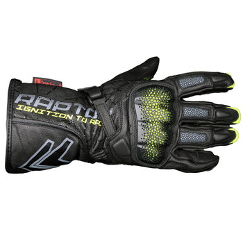 A premium leather glove that meets CE Standard 13594:2015, the Frank Thomas Raptor glove features knuckle protectors for superior protection. Padding in key areas provides additional security with Superfabric inserts and double-layer palm protection. Perforations in key areas enhance airflow for exceptional comfort, and added grip provides greater feedback. Elastication and an adjustable wrist strap provide a perfect fit, and a conductive index finger allows use with touchscreens. The leather is super-supple for optimum comfort without sacrificing durability. Frank Thomas branding throughout.