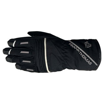 CE Certified Level 1 KP EN 13594:2015, the Frank Thomas Rose ladies' gloves offer a durable textile construction with leather detailing, padding in vulnerable areas and accordion panelling for optimum movement and comfort. The lining gives added comfort and warmth, and the longer styling offers added coverage to prevent weather ingress, plus these are waterproof. Adjustability at the cuff and wrist provides a perfect fit, and additional grip at the palm and fingers offers excellent feedback. Reflective detailing maximises night visibility. Made to fit women well. Available in a choice of colours.