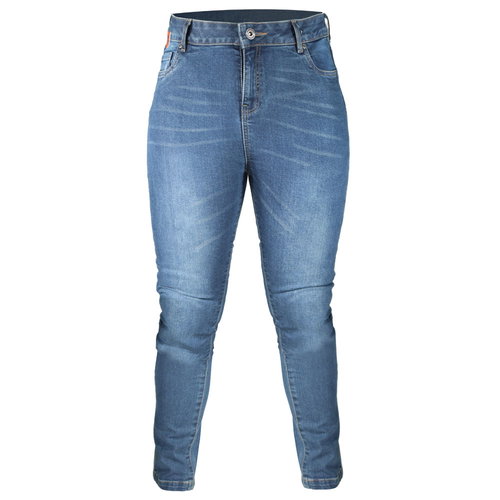 A newer version of the incredibly popular Red Route Bella denim motorcycle jeans, the Red Route Bella V.20 offers very similar benefits with a few more tweaks for improvement. They continue to offer the fashionable high-waisted, skinny-leg design with stretchy denim and Aramid mix for superior durability, but now with CE Class AA EN 17092-3:2020 certification. Removable CE Level 2 armour at the knees and hips (SW-294) gives superior impact protection. The Red Route Bella V.20 jeans offer a blue wash finish with classic five-pocket styling, a fly zip, button fastening, and belt loops of traditional denim jeans.